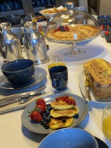 Le petit-déjeuner se prend au rez-de-chaussée, dans la salle à manger du Moulin.